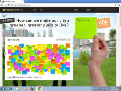 La acción local es fundamental para generar ciudades y entornos más razonables en materia ambiental. El día de hoy fue lanzado oficialmente el sitio verde http://nyc.changeby.us. Esta plataforma tiene como objetivo vincular a los habitantes de la Ciudad de Nueva York entre sí y con sus autoridades para que compartan sus ideas para hacer más verde la ciudad y sus vecindarios. Además, este sitio -creado por Local Projects y dirigido por el gobierno de la Ciudad de Nueva York- busca que los ciudadanos generen proyectos o se unan otros ya existentes, creando grupos de trabajo y buscando financiamiento ya sea a través del gobierno o de organizaciones sin fines de lucro. El gobierno de la Ciudad de Nueva York y su departamento de Protección Ambiental, en coordinación con el Comité de Ciudadanos por la Ciudad de Nueva York, utilizarán el sitio para identificar y guiar proyectos que sean elegibles para obtener recursos económicos para su realización.
